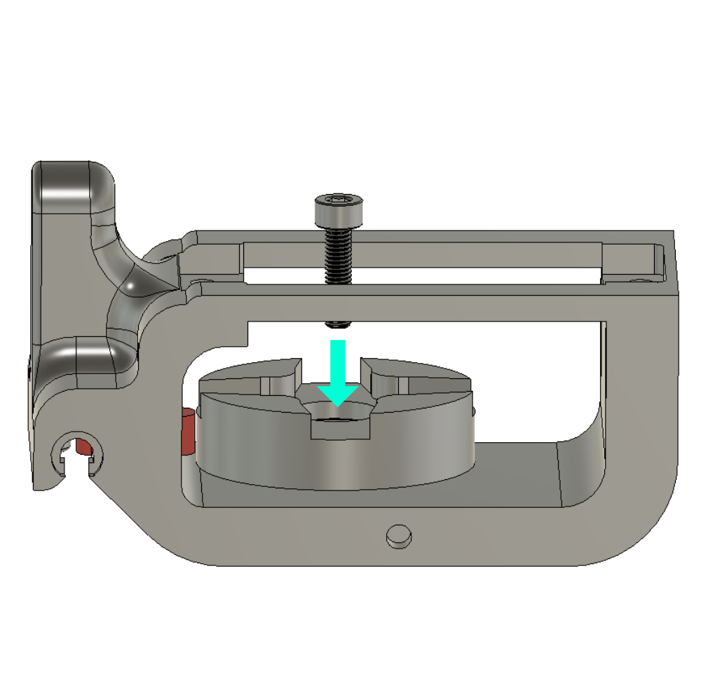 - Insert the screws M3x12 CHC socket head cap screw to secure the rotary cam onto the main component with an allen key .