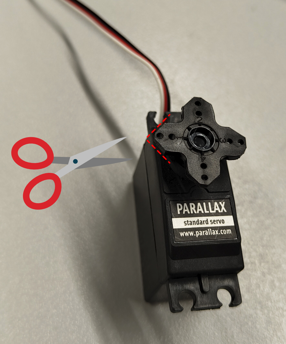 - Take the servo motor and reduce the size of the blades with a wire cutter to ensure a proper fit with the rotary cam coupling.