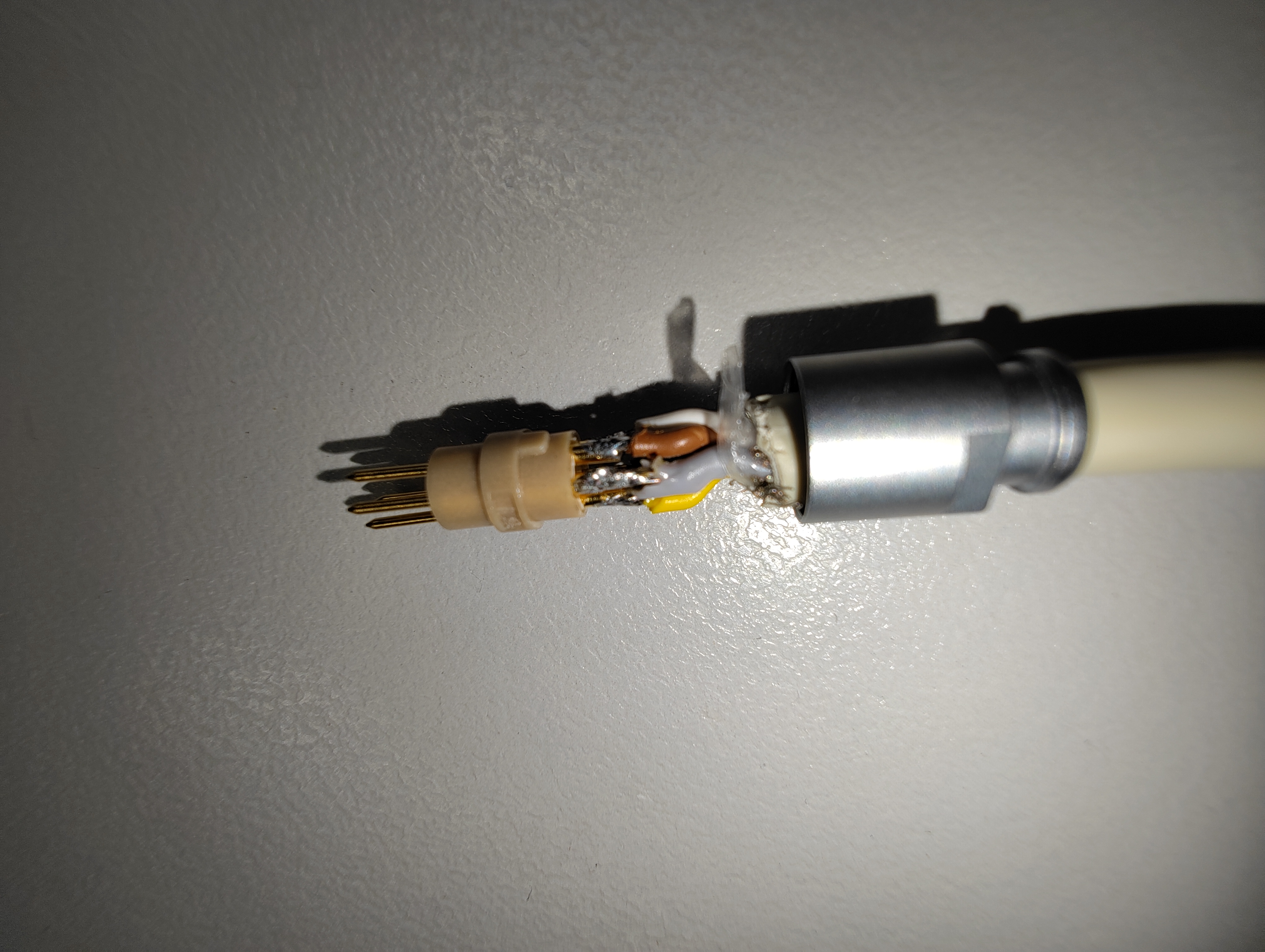 Don't forget to insert all the parts of the lemo connector on the cable before soldering the wires.