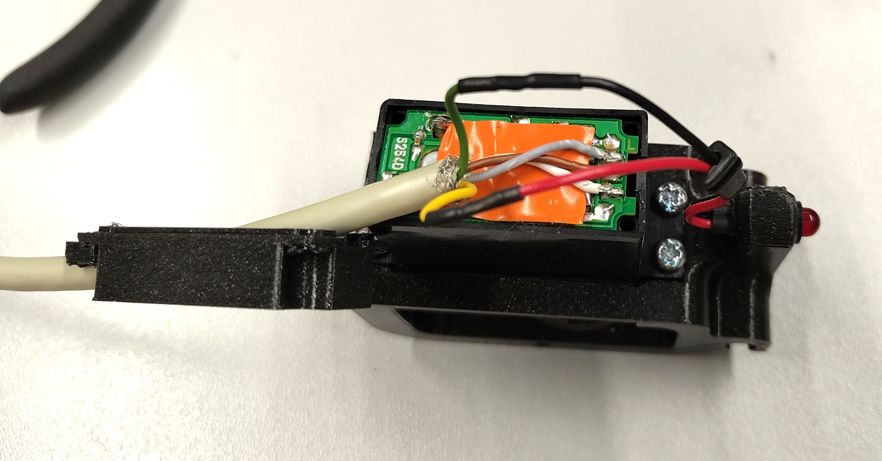 - Cut the servo motor wires with a wire cutter and retrieve the cable gland for further steps, then insert the LED into its designated slot.
